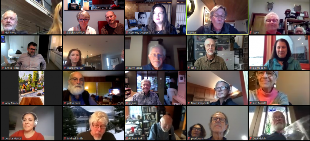 FHA President John Leness welcomed attendees and explained that Courtney Cooper would moderate the conference call. 138 members joined via video or conference call, many with partners, so it was an excellent turn out given the circumstances! John thanked board members Blair Robbins, Susan Chatlos-Susor, and Tom Campbell who are stepping down and proposed new members, Bob Burk (of Eastlake) and Dave Chapelle (Westlake) who were elected unopposed. John went on to update members on the Kenmore Seaplane situation, explained anticipated infrastructure costs for older docks Terry Pettus Park & Portage Bay, as well as the Fairview Ave E Bridge Project Finally, John paid tribute to two people who have literally helped keep the houseboats afloat – Art Holder, the indispensable stringer man, and Sid McFarland, who was the expert on moving houseboats around when required. The meeting ended at 7:45 after a couple of questions from the floor. You can view President John Leness’ presentation here and a recording of the meeting here.