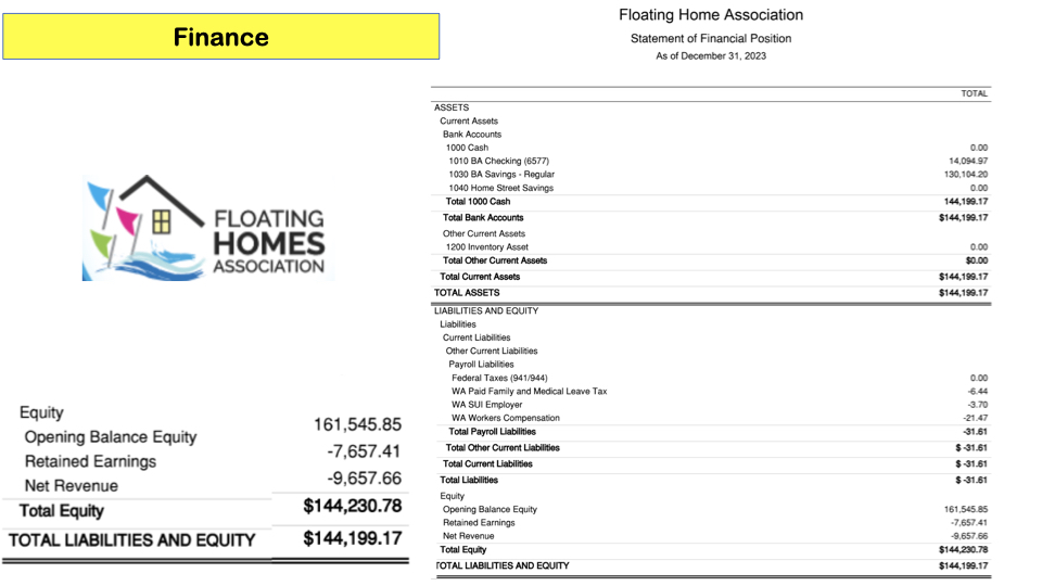 In 1962 the FHA was started to be that voice and has collected dues and advocated for the community for 62 years. He reviewed the FHA mission and the board members introduced themselves, relating how they came to be living on a houseboat and what their motivation was for joining the board. There was a common theme of loving the water, surrounding nature, friendly neighbors and a desire to give back to the community.